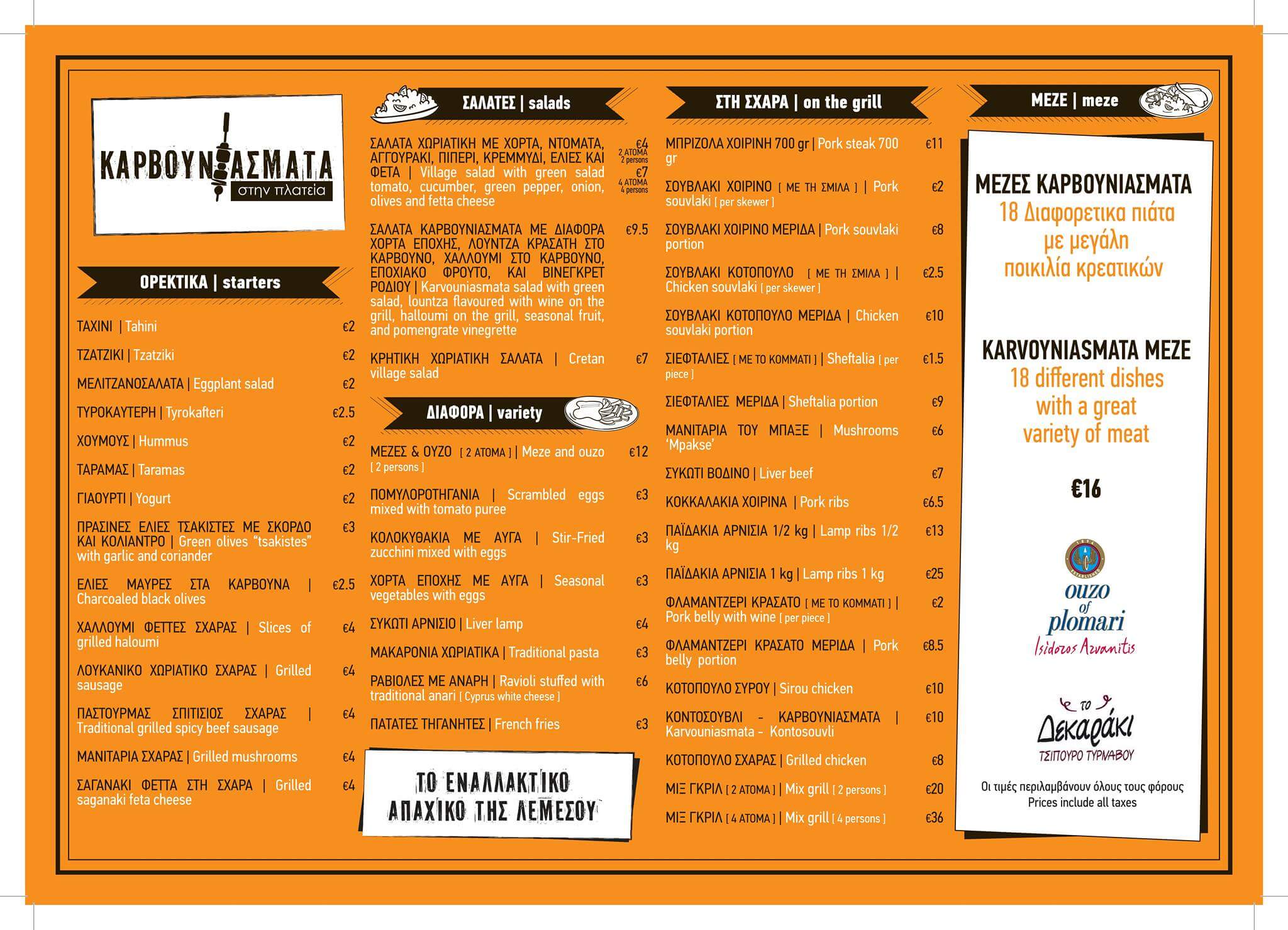 Prices subject to change without prior notice. Please check prices with the restaurant before visiting or ordering.