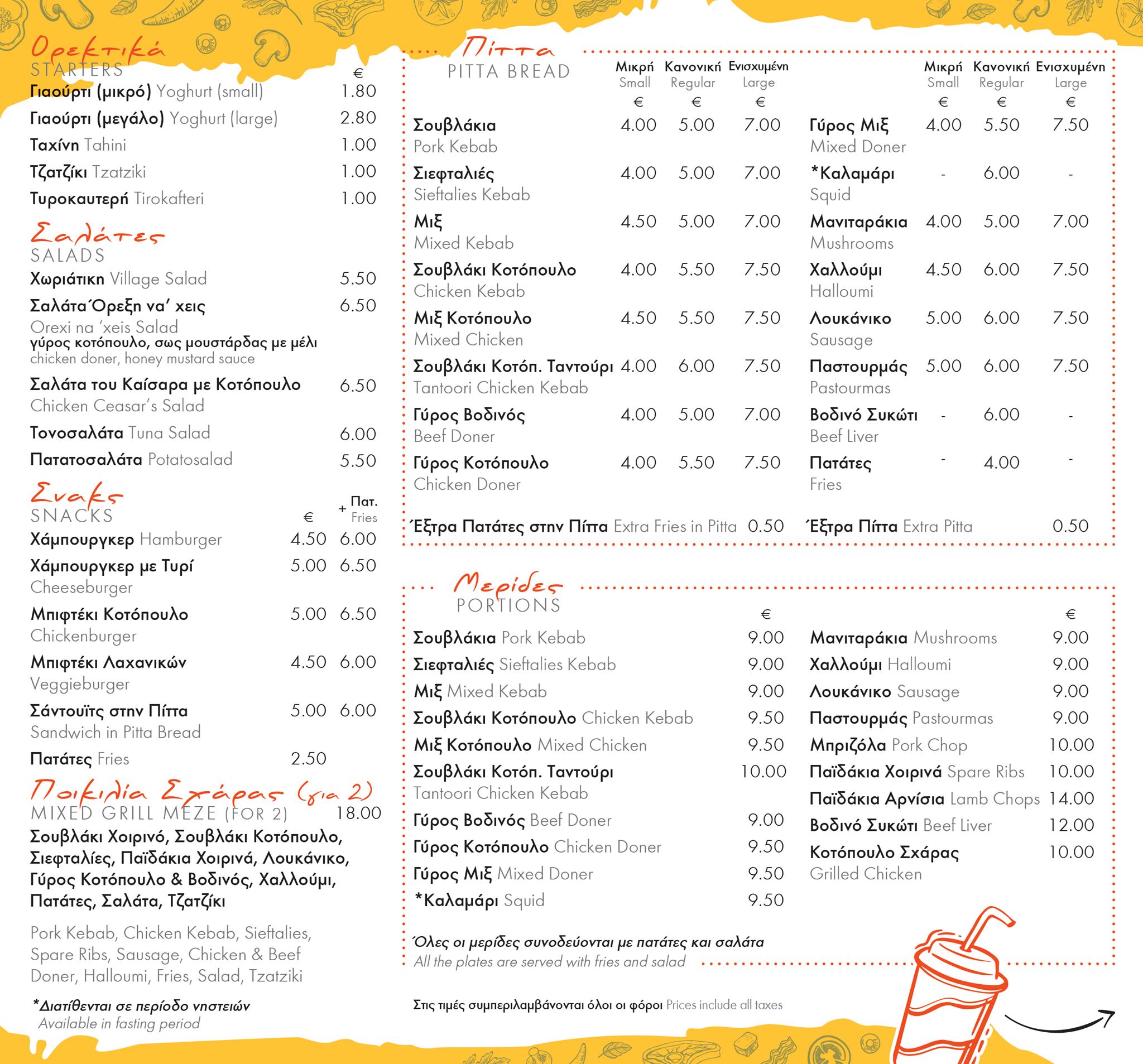 Prices subject to change without prior notice. Please check prices with the restaurant before visiting or ordering.